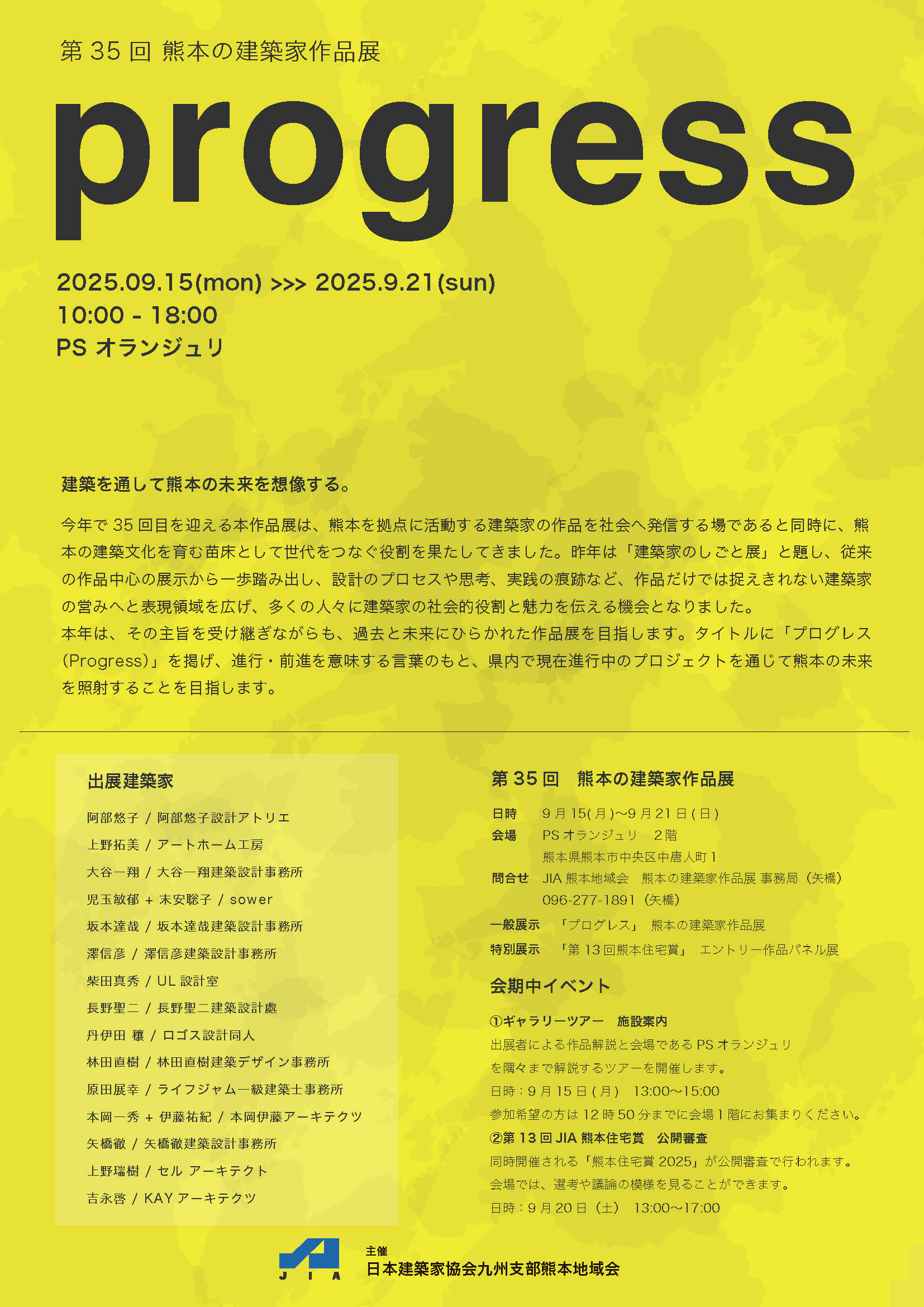 JIA熊本地域会主催の第35回建築家作品展に出展します。